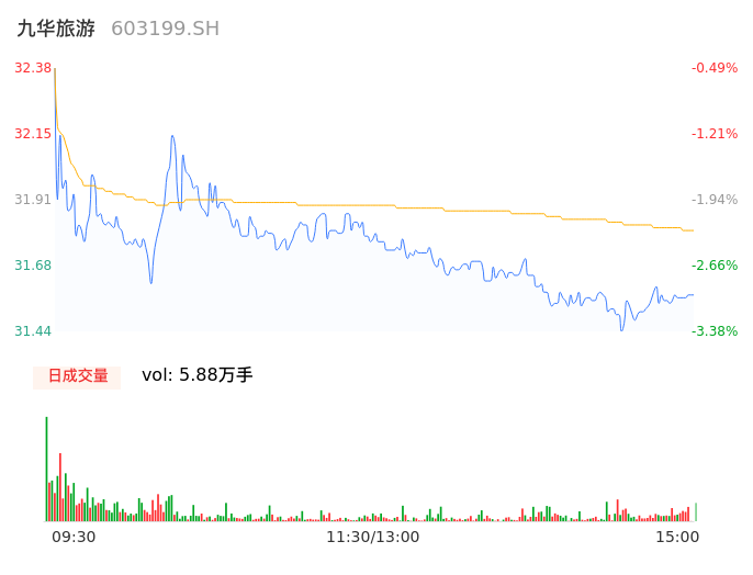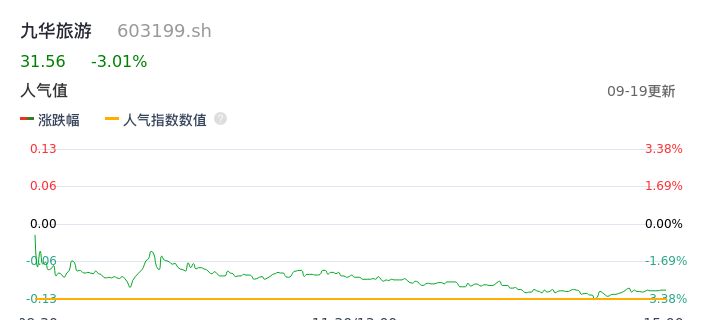 09月19日,九华旅游收报31.56,股价涨幅-3.01%,成交金额1.87亿元,换手率5.31%。