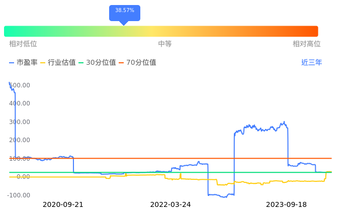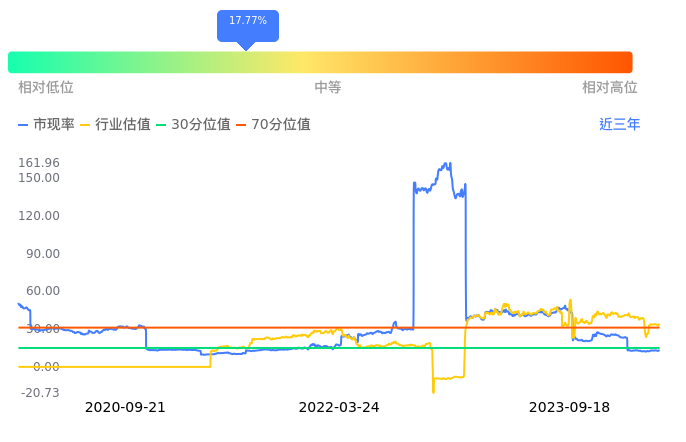 2023年09月18日,九华旅游上涨3.53%收于32.54,今日成交金额2.81亿元。下文将从市盈率PETTM、市净率PB、市现率3个角度去分析公司估值情况。