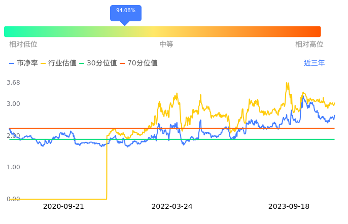 九华旅游当前市净率PB为2.66,在所属的旅游及景区中,市净率PB排6,前五名分别为中青旅市净率1.52、黄山旅游市净率2.25、丽江股份市净率2.35、峨眉山A市净率2.42、三特索道市净率2.44。九华旅游当前市净率PB为2.66,超过近3年94.08%的历史数据。