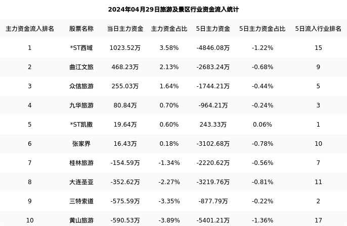 从主力资金流向来看,旅游及景区行业今日主力资金流入12.48亿元,在所有申万二级行业中排名:131/131。