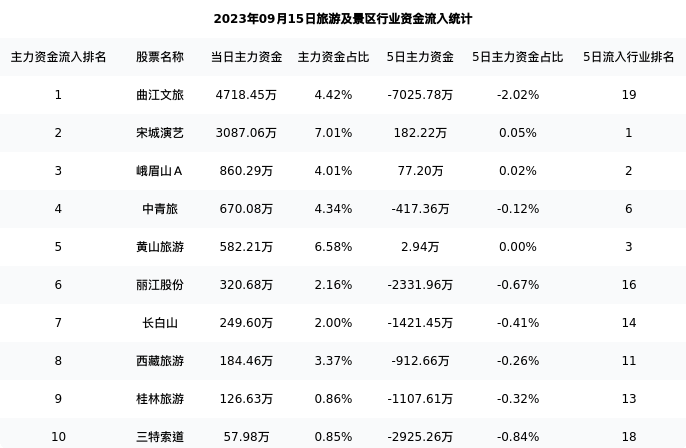 从主力资金流向来看,旅游及景区行业今日主力资金流入9.03亿元,在所有申万二级行业中排名:45/131。