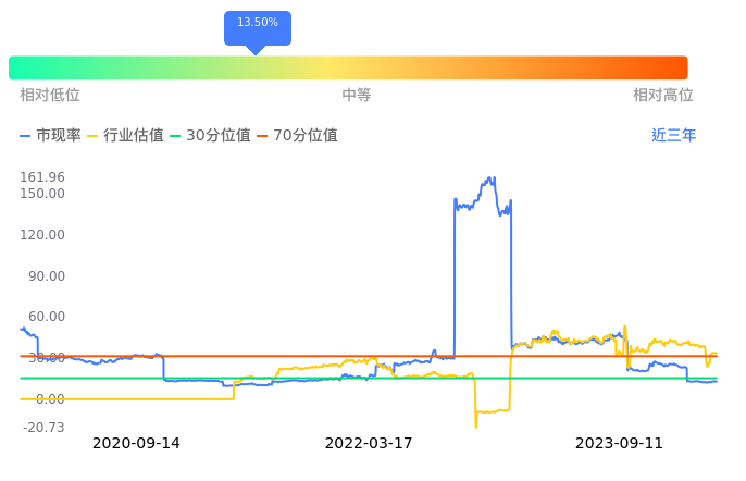 2023年09月11日,九华旅游上涨1.53%收于31.88,今日成交金额1.72亿元。下文将从市盈率PETTM、市净率PB、市现率3个角度去分析公司估值情况。