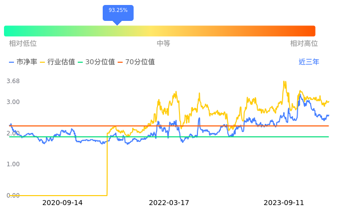 九华旅游当前市净率PB为2.60,在所属的旅游及景区中,市净率PB排6,前五名分别为中青旅市净率1.51、黄山旅游市净率2.22、丽江股份市净率2.38、峨眉山A市净率2.40、三特索道市净率2.46。九华旅游当前市净率PB为2.60,超过近3年93.25%的历史数据。