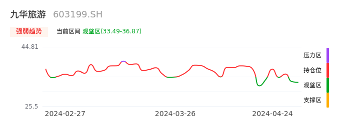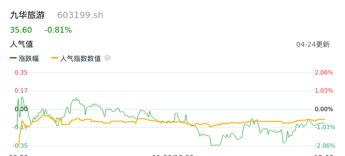 04月24日,九华旅游收报35.60,股价涨幅-0.81%,成交金额1.22亿元,换手率3.09%。