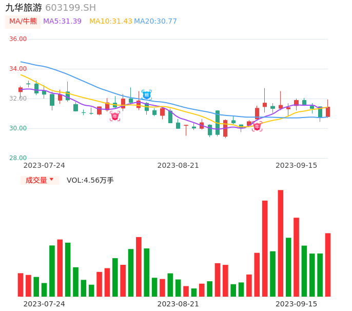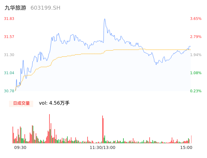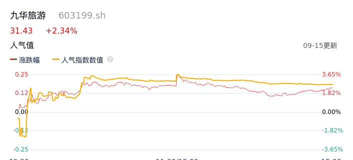 09月15日,九华旅游收报31.43,股价涨幅2.34%,成交金额1.43亿元,换手率4.12%。