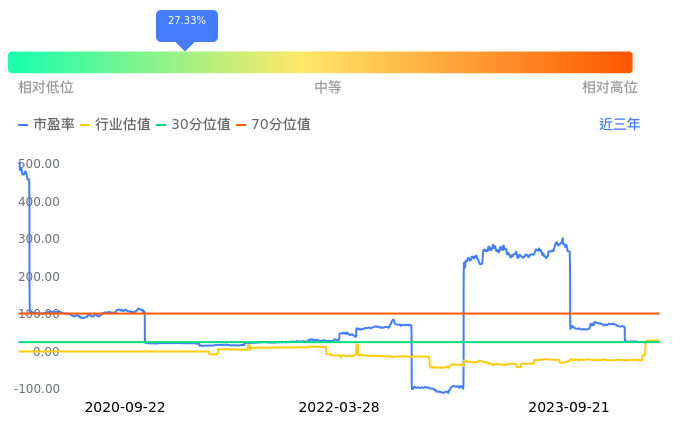 2023年09月21日,九华旅游下跌3.19%收于28.80,今日成交金额1.29亿元。下文将从市盈率PETTM、市净率PB、市现率3个角度去分析公司估值情况。