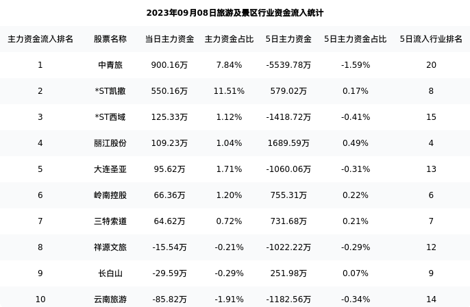 从主力资金流向来看,旅游及景区行业今日主力资金流入5.85亿元,在所有申万二级行业中排名:81/131。
