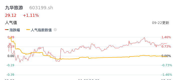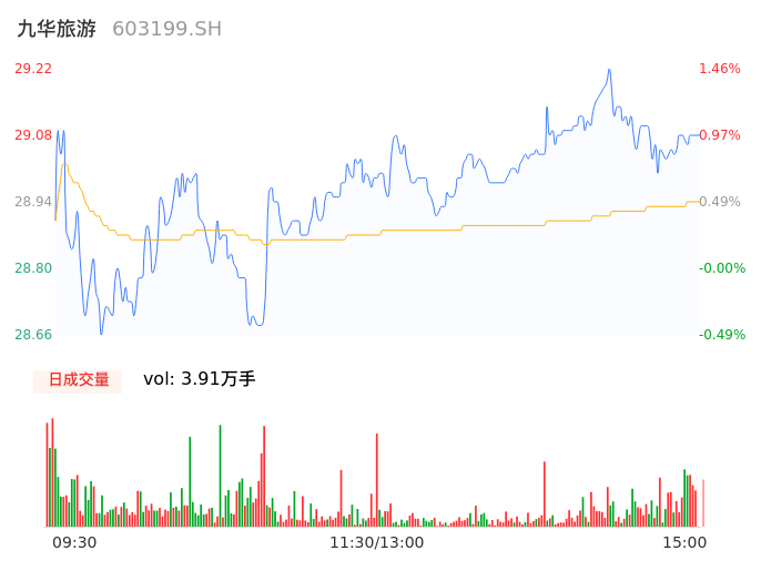 09月22日,九华旅游收报29.12,股价涨幅1.11%,成交金额1.13亿元,换手率3.53%。