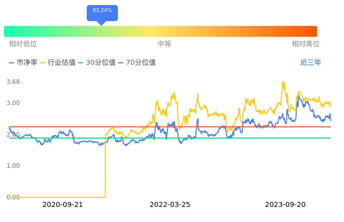 九华旅游当前市净率PB为2.43,在所属的旅游及景区中,市净率PB排6,前五名分别为中青旅市净率1.45、黄山旅游市净率2.11、三特索道市净率2.22、峨眉山A市净率2.22、丽江股份市净率2.27。九华旅游当前市净率PB为2.43,超过近3年83.24%的历史数据。