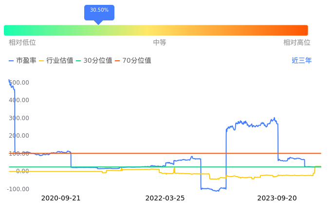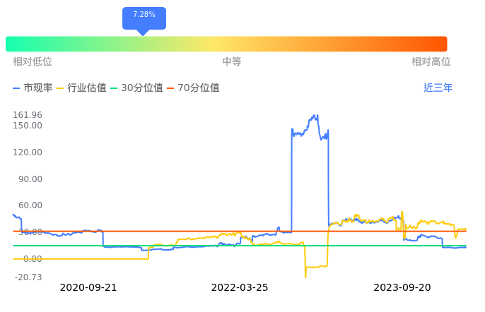 2023年09月20日,九华旅游下跌5.74%收于29.75,今日成交金额1.63亿元。下文将从市盈率PETTM、市净率PB、市现率3个角度去分析公司估值情况。