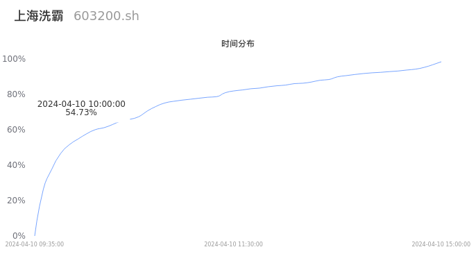 603200上海洗霸2024年04月10日成交21.26万手,成交金额5.35亿元,相较昨日放量11.80万手,换手率12.12%,成交活跃。