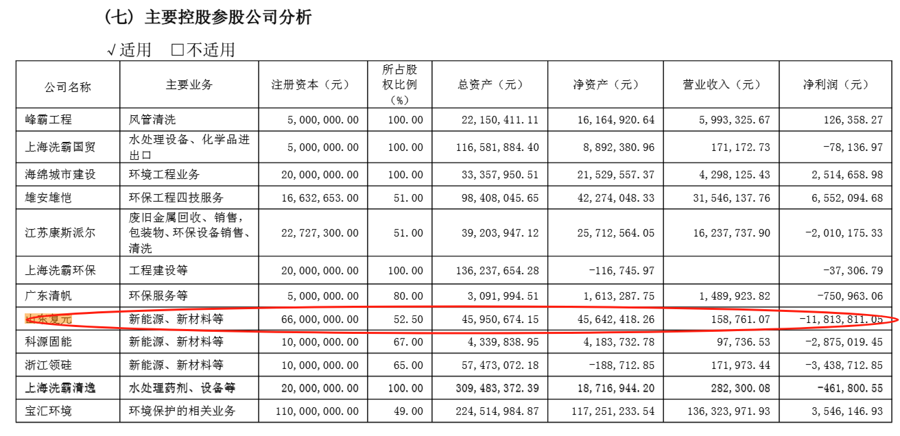 另外上海洗霸在山东复元引入战略投资者的公告中称,本次交易有利于优化公司的资源配置和产业布局,符合公司战略规划,同时也有利于推动山东复元的业务可持续独立发展。本次股权转让价格合理,预计将产生一定投资收益,具体金额尚需会计师事务所审计后予以确认,转让所得款项将用于补充公司流动资金,将增加公司现金流,有利于公司的长期发展,不存在损害公司及公司股东利益的情形,不会对公司财务状况、经营成果产生不利影响。本次交易完成后,山东复元不再纳入公司合并报表范围,公司持有山东复元35.49%股权。