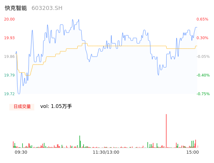 04月24日,快克智能收报19.97,股价涨幅0.50%,成交金额2080.27万元,换手率0.42%。