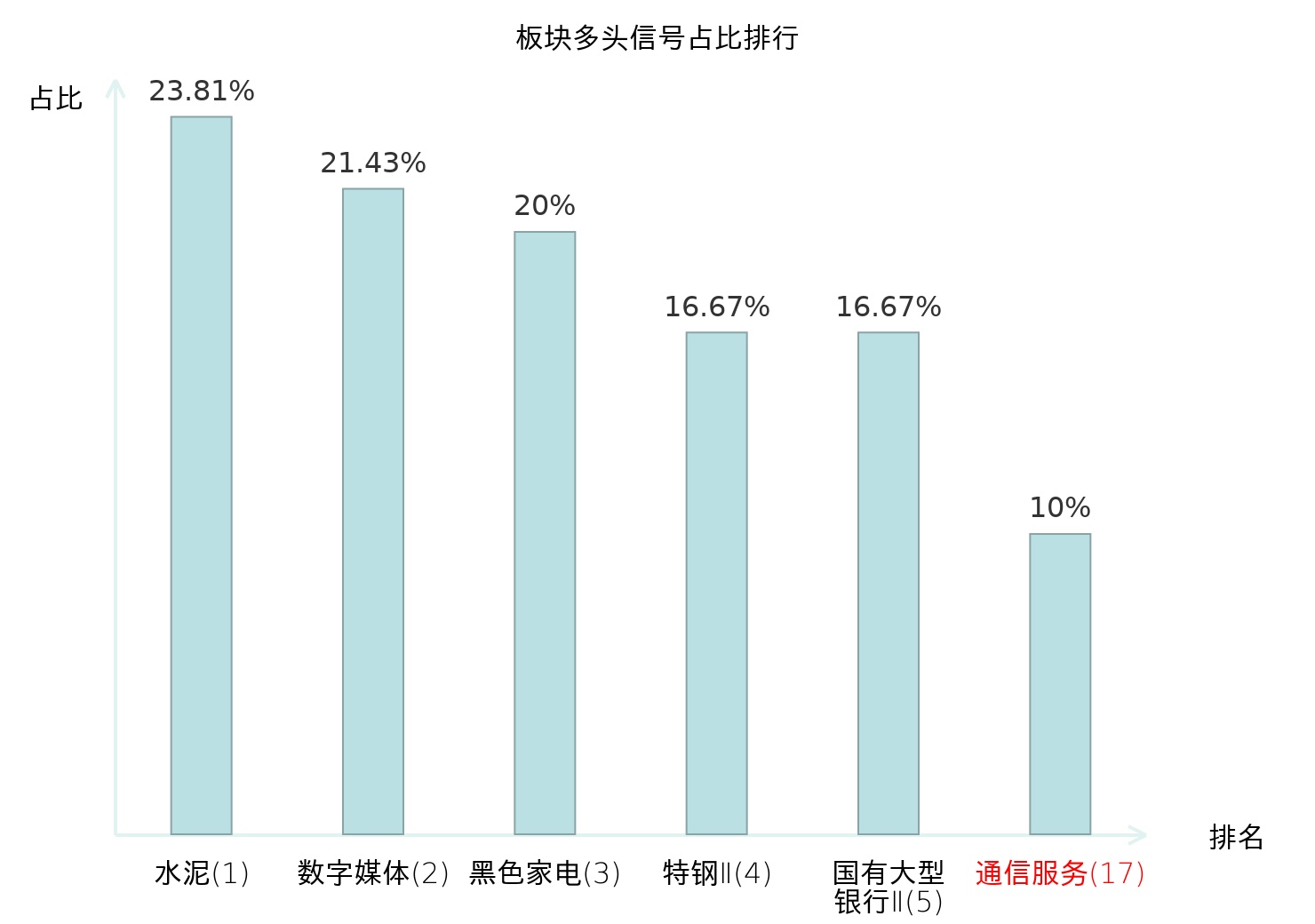 全市场所有行业板块中主力多头信号占比排名中,水泥板块位居第一。焦炭Ⅱ板块名次提升最快,较昨日上升115位。