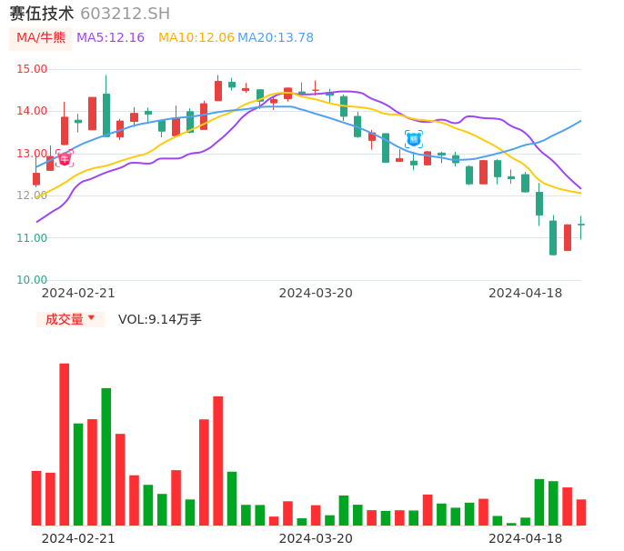 04月18日,赛伍技术收报11.31,股价涨幅0.00%,成交金额1.03亿元,换手率2.09%。