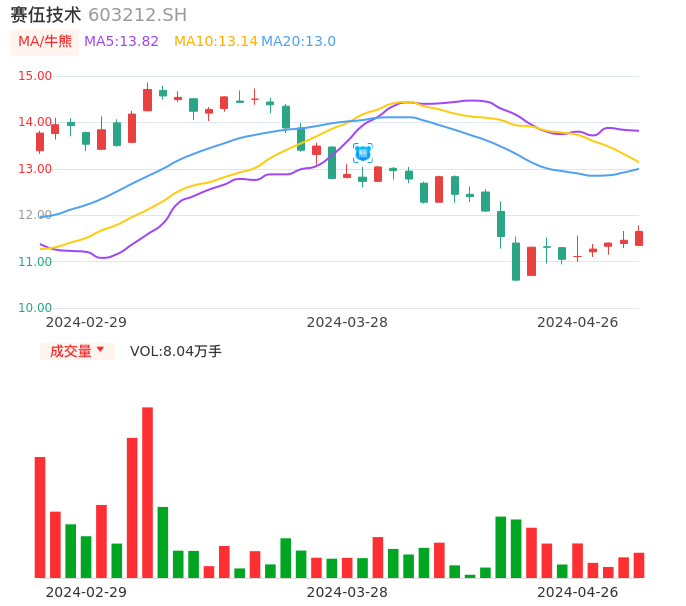 04月26日,赛伍技术收报11.65,股价涨幅1.66%,成交金额9330.66万元,换手率1.84%。