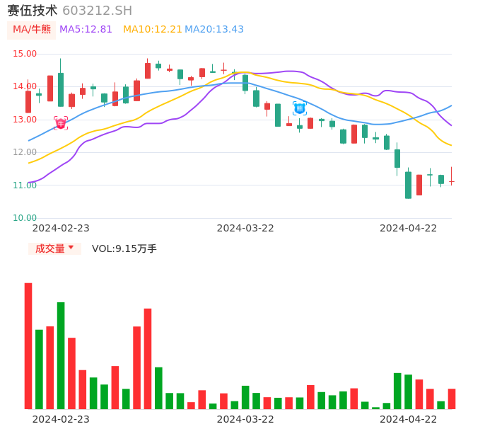 04月22日,赛伍技术收报11.11,股价涨幅0.54%,成交金额1.02亿元,换手率2.09%。