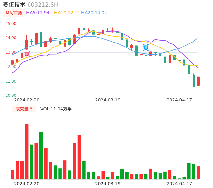 04月17日,赛伍技术收报11.31,股价涨幅6.70%,成交金额1.23亿元,换手率2.52%。