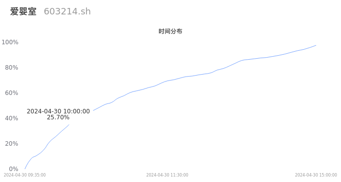 603214爱婴室2024年04月30日成交3.93万手,成交金额5177.99万元,相较昨日缩量5873手,换手率2.84%,成交清淡。