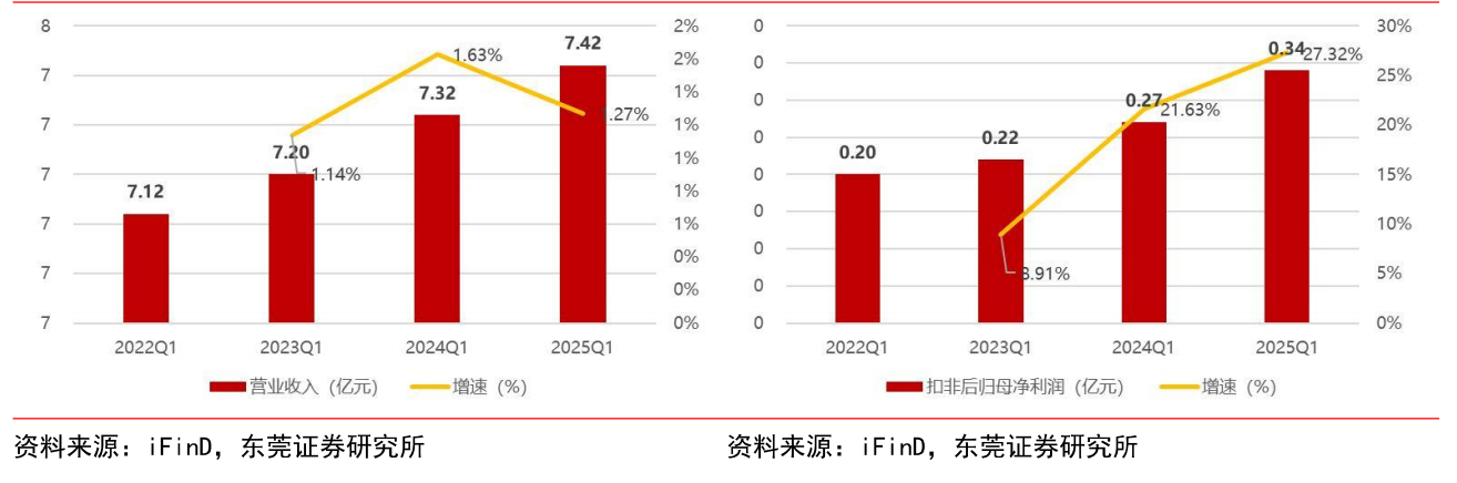 2025Q1,公司营业收入同比增长1.27%,扣非后归母净利润同比增长27.32%,公司业绩增长的主要动力来自于自主软件产品业务。