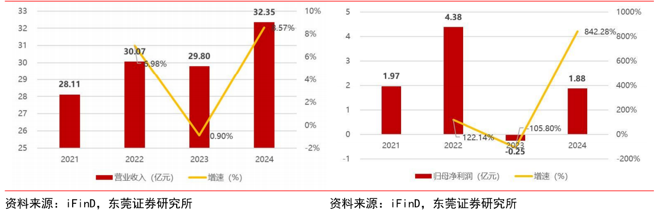 汉得信息作为A股市场首家以ERP咨询实施为主营业务的上市公司,历经近30年发展,逐渐从单一的实施服务商转变为“软件+实施+运营”的数字化综合产品及解决方案服务商。近年来,公司基于对AI智能化应用、企业级PaaS平台、数据平台业务三大新兴业务的平台化智能化产品和能力沉淀,通过“产品+服务”双轮模式,进一步加持自主产品业务板块“产业数字化+财务数字化”,同步提升传统业务板块“泛ERP”“ITO外包”的交付质量和交付效率,为企业客户提供从战略规划到落地实施的全周期数字化支持。2024年自主软件业务快速增长,公司实现营业收入32.35亿元,同比增长8.57%;实现归母净利润和扣非后归母净利润1.88亿元和1.37亿元利润端同比扭亏为盈,公司整体业绩明显改善。