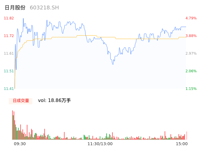 04月17日,日月股份收报11.77,股价涨幅4.34%,成交金额2.21亿元,换手率1.95%。
