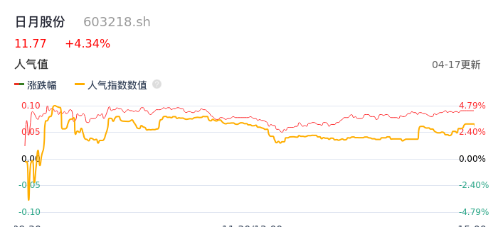 04月17日,日月股份收报11.77,股价涨幅4.34%,成交金额2.21亿元,换手率1.95%。