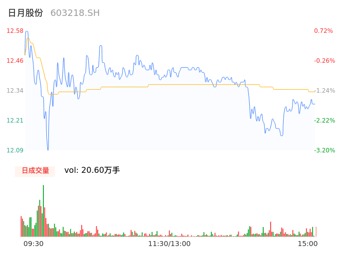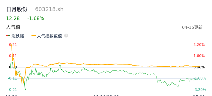 04月15日,日月股份收报12.28,股价涨幅-1.68%,成交金额2.54亿元,换手率2.13%。