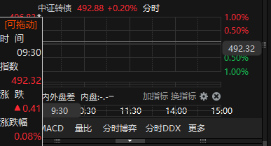 上证报中国证券网讯 11月11日,中证转债指数开盘上涨0.08%,报492.32点。其中,东时转债、振华转债、豫光转债、中贝转债涨幅居前,分别涨7.07%、6.69%、3.98%、2.16%。天赐转债、大中转债跌幅居前,分别跌2.50%、1.07%。