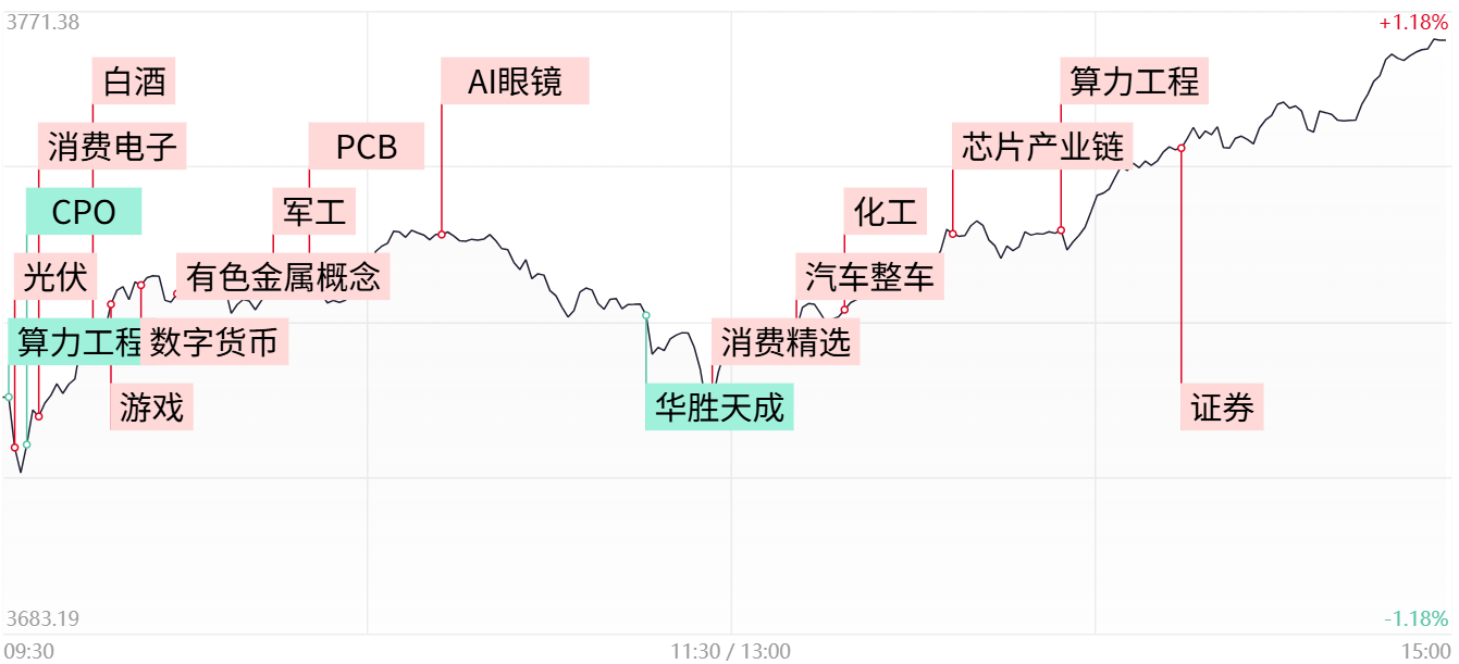 不过较好的是,算力硬件方向的一些核心容量权重还是获得了资金的有力承接。生益电子、天孚通信探底回升成功翻红,新易盛、中际旭创、工业富联、沪电股份等个股同样收窄跌幅。作为本轮行情的领涨主线,相关核心标的只要中期趋势没有遭到破坏,便依旧存在着资金回流修复预期。但在活跃资金加速涌入的当下,短线波动加剧在所难免,故应对上仍可在高位震荡整固的过程中寻找低吸套利的机会。