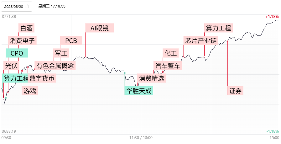 8月19日,上海市经济和信息化委员会等三部门联合发布《上海市加快推动“AI+制造”发展的实施方案》。其中提出,开展云端模型端侧部署,提升终端的模型应用能力,推动终端智能化操作创新。尽管受到昨日英伟达等美股大型科技股普跌拖累,算力硬件股早盘一度承压,但午后国产算力方向集体爆发,浪潮信息、光迅科技双双涨停,芯原股份一度触及20厘米涨停,寒武纪涨逾8%并收于1000元大关之上。尽管字节跳动辟谣与芯原股份并无AI芯片相关合作,但国产算力方向的普涨仍基于国内AI基础设施维持大额投资进而对相关产业链拉动的强烈预期。而随着天孚通信尾盘拉红并收于全天高点附近,新易盛、胜宏科技等英伟达链核心品种也收复日内大部分失地,仍反映主流资金基于英伟达链业绩高确定性的认可。若英伟达等股价短期未出现高位连续破位性杀跌,英伟达产业链的短期调整仍获得主流资金的强承接。