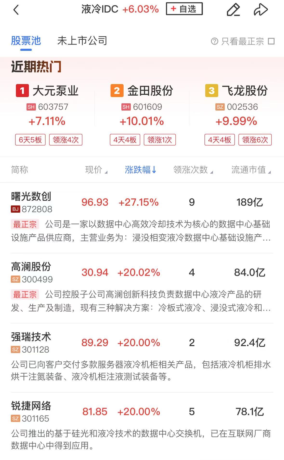 液冷服务器概念股再度爆发,高澜股份、强瑞技术、锐捷网络、金田股份、川润股份、银轮股份等个股涨停。