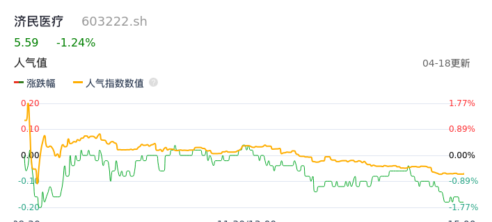 04月18日,济民医疗收报5.59,股价涨幅-1.24%,成交金额2748.43万元,换手率0.91%。