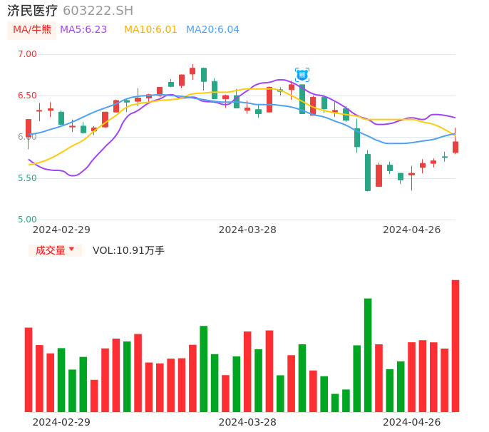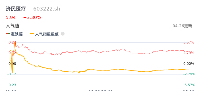 04月26日,济民医疗收报5.94,股价涨幅3.30%,成交金额6485.71万元,换手率2.03%。