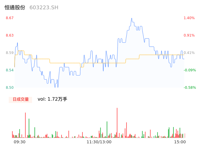 04月12日,恒通股份收报8.57,股价涨幅0.23%,成交金额1470.97万元,换手率0.31%。