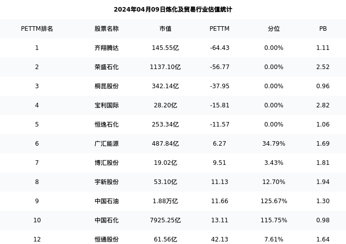 恒通股份最新报告期数据为三季度,下表汇总了炼化及贸易行业内市值靠前的公司三季度主要经营数据