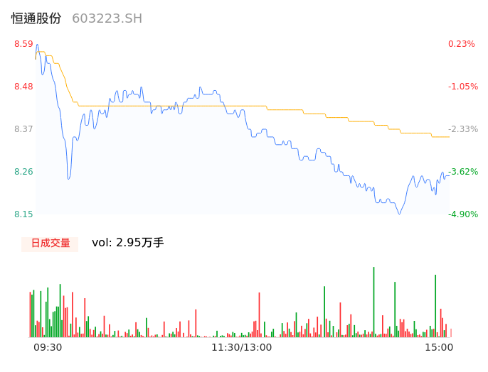 04月15日,恒通股份收报8.26,股价涨幅-3.62%,成交金额2464.59万元,换手率0.53%。