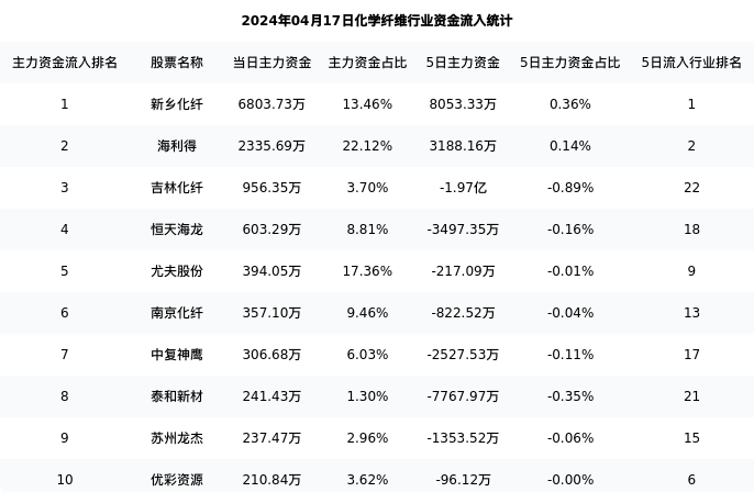 从主力资金流向来看,化学纤维行业今日主力资金流入7.15亿元,在所有申万二级行业中排名:51/131。