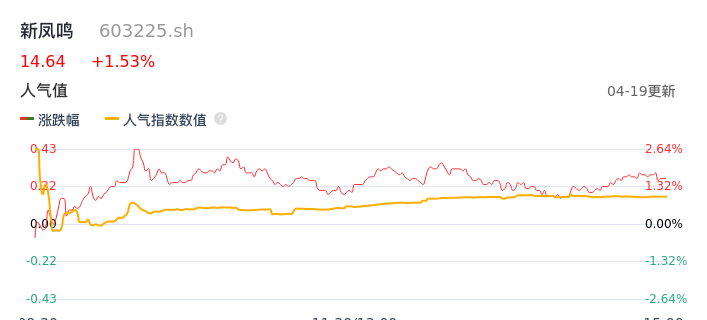 04月19日,新凤鸣收报14.64,股价涨幅1.53%,成交金额1.81亿元,换手率0.81%。