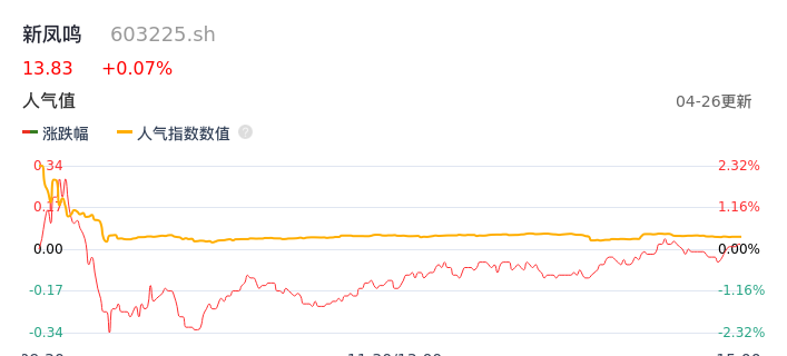 04月26日,新凤鸣收报13.83,股价涨幅0.07%,成交金额2.13亿元,换手率1.02%。