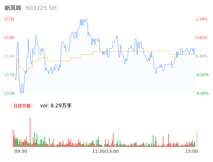04月25日,新凤鸣收报13.82,股价涨幅0.58%,成交金额1.14亿元,换手率0.54%。