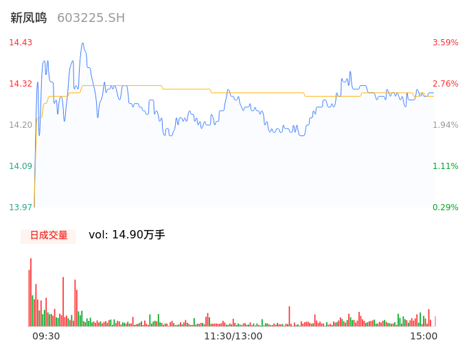 04月30日,新凤鸣收报14.29,股价涨幅2.58%,成交金额2.13亿元,换手率0.97%。