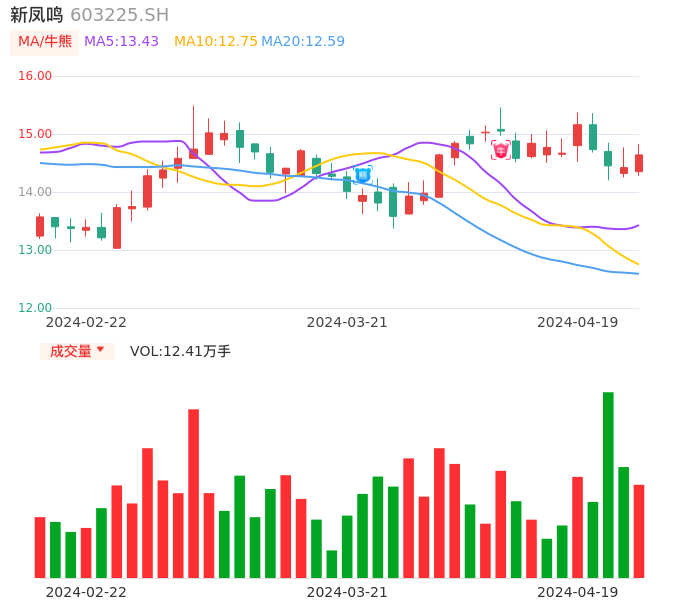 04月19日,新凤鸣收报14.64,股价涨幅1.53%,成交金额1.81亿元,换手率0.81%。