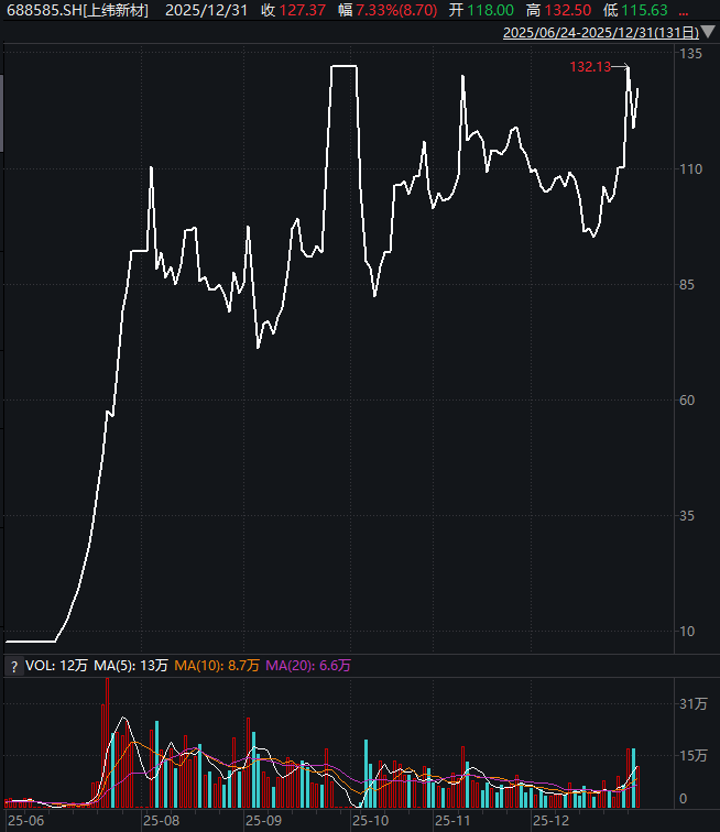 业绩层面,公司2025年前三季度营收同比增长35%,归母净利润同比增长62%,基本面的改善进一步支撑股价走强。股价从年初的26.54元上涨至年末的155.71元,实现了估值与业绩的同步提升。
