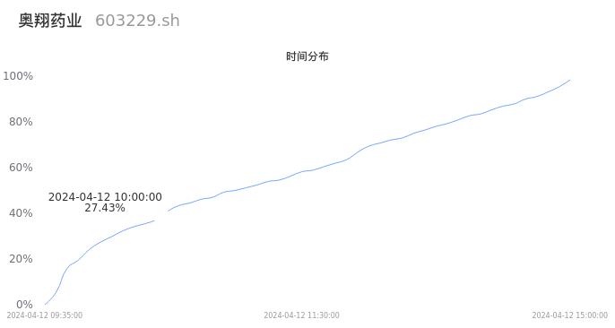 603229奥翔药业2024年04月12日成交3.81万手,成交金额3865.70万元,相较昨日缩量3.18万手,换手率0.64%,成交清淡。