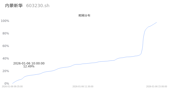 603230内蒙新华2026年01月06日成交5.73万手,成交金额7281.06万,相较昨日缩量667手,换手率1.62%,成交清淡。