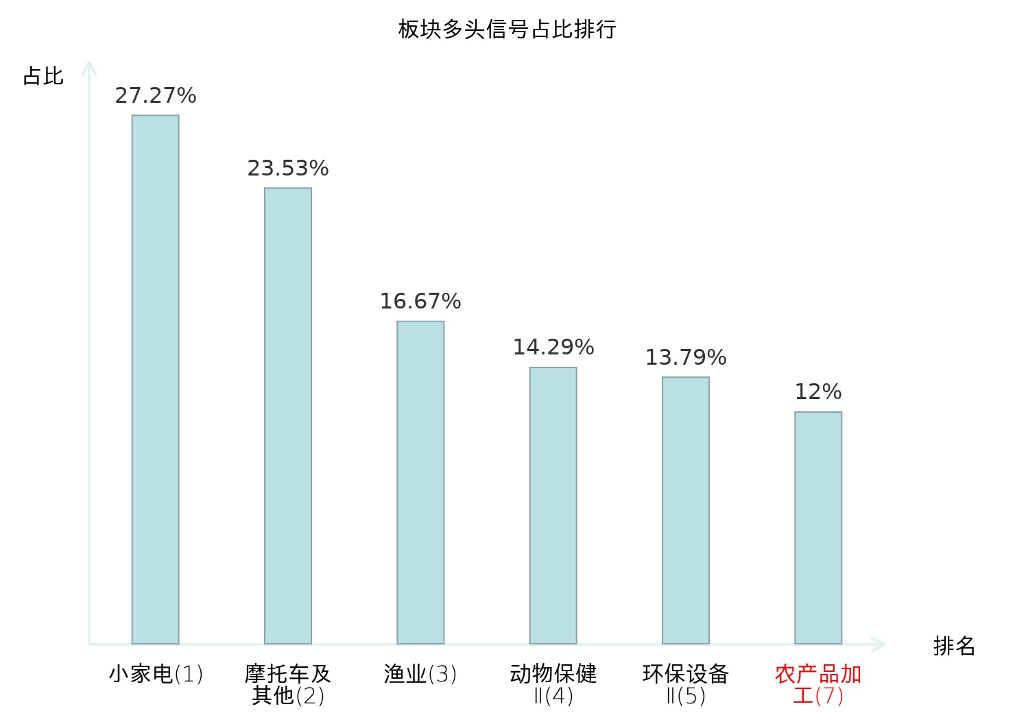 从主力宝信号数据分析,索宝蛋白所属的农产品加工板块中共有3只股票发出主力多头信号,主力多头信号占比在全行业中排名第7位,较昨日上升59位。排名的显著上升表明主力对于该板块的买入意愿增强,为投资者提供了重要的市场情绪参考。全市场所有行业板块中,小家电板块的主力多头信号占比最高,位居第一。渔业板块名次提升最快,较昨日上升122位。这些变动反映了主力资金在不同行业间的偏好变化,有助于投资者更好地把握市场的动态和潜在投资机会。