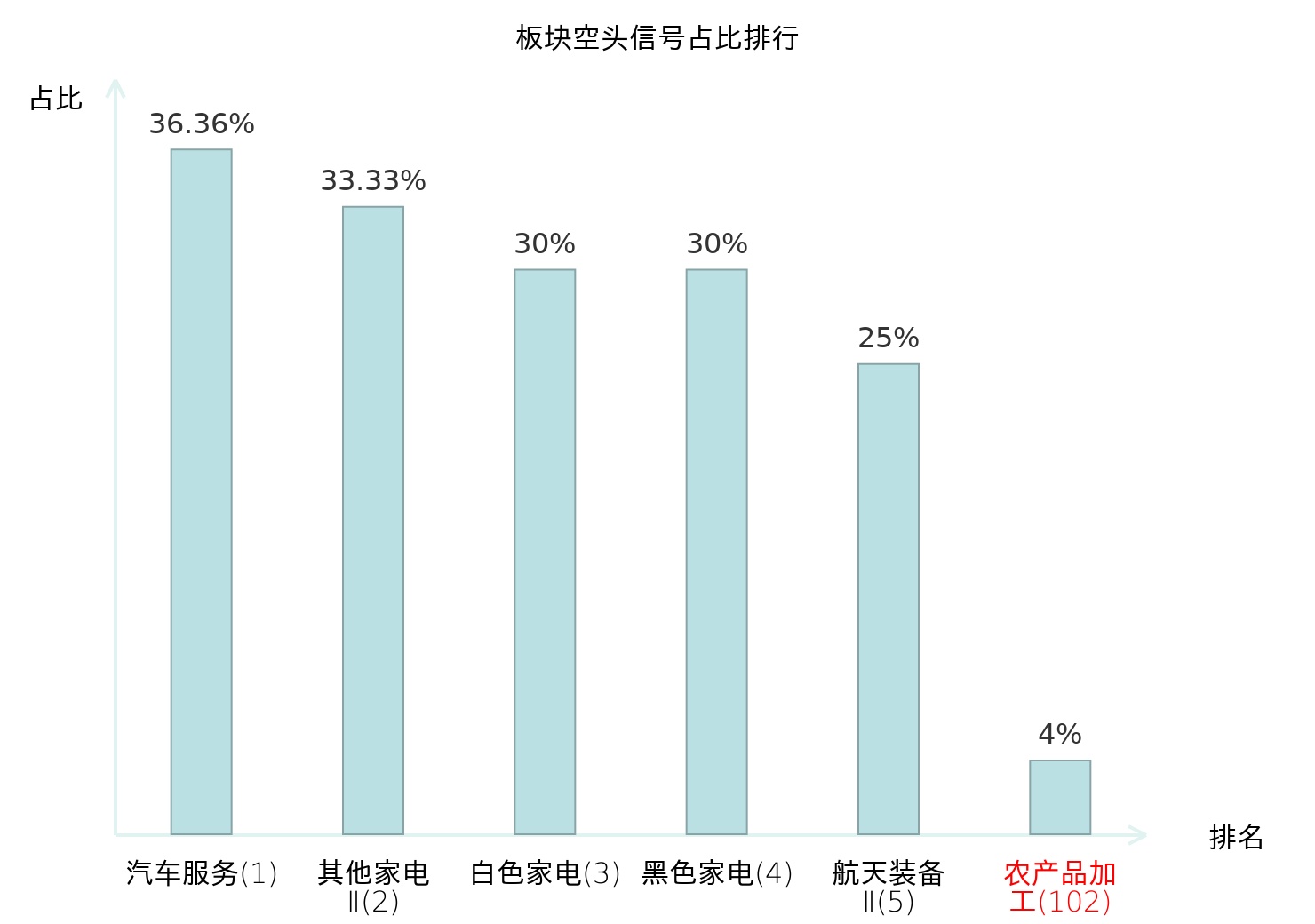 全市场所有行业板块中主力空头信号占比排名中,汽车服务板块位居第一。汽车服务板块名次提升最快,较昨日上升115位。