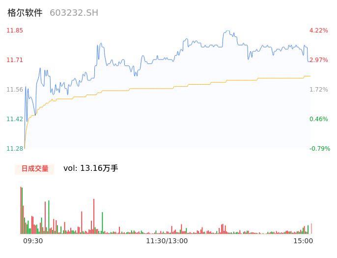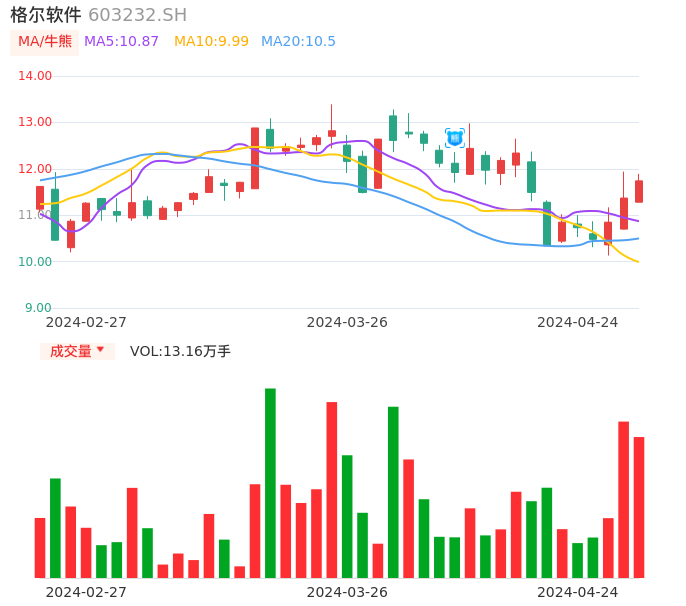 04月24日,格尔软件收报11.74,股价涨幅3.25%,成交金额1.53亿元,换手率5.64%。