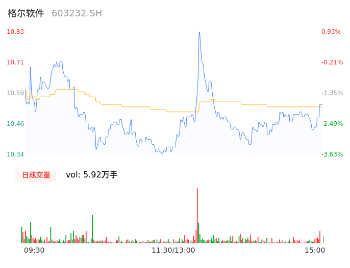 04月19日,格尔软件收报10.48,股价涨幅-2.33%,成交金额6230.61万元,换手率2.54%。